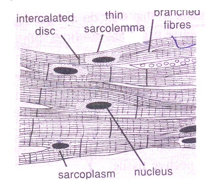 - Ans.1. Heart muscles are cylindrical, branched and uninucleate.