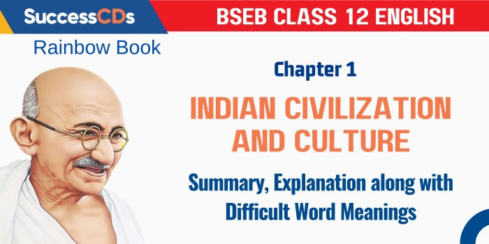 Indian Civilization and Culture – BSEB Class 12 English Rainbow Book Chapter 1 Indian Civilization and Culture Summary, detailed explanations of the lesson along with the meanings of difficult words.