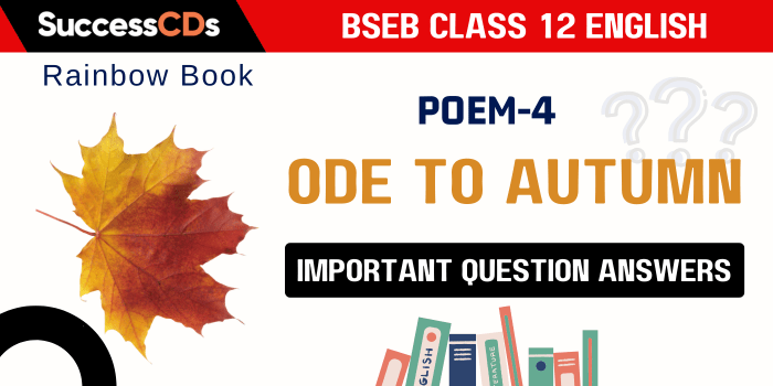 Ode To Autumn Question Answers: Looking for Ode To Autumn important questions and Answers for BSEB Class 12 English Rainbow Book? Look no further! Our comprehensive compilation of important questions will help you brush up on your subject knowledge. Practicing BSEB Class 12 English question Answers can significantly improve your performance in the board exam. Improve your chances of scoring high marks by exploring Ode To Autumn Question Answers now. The questions listed below are based on the latest BSEB exam pattern. All the exercises and Questions Answers given at the back of the lesson have also been covered.