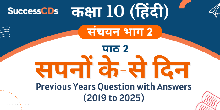 Sapno Ke Se Din Previous Year Questions with Answers – Question Answers from Previous years Question papers provide valuable insights into how chapters are typically presented in exams. They are essential for preparing for the CBSE Board Exams, serving as a valuable resource.They can reveal the types of questions commonly asked and highlight the key concepts that require more attention. In this post, we have shared Previous Year Questions for Class 10 Hindi (Course B) Sanchayan Bhag 2 Book Chapter 2, “Sapno Ke Se Din”