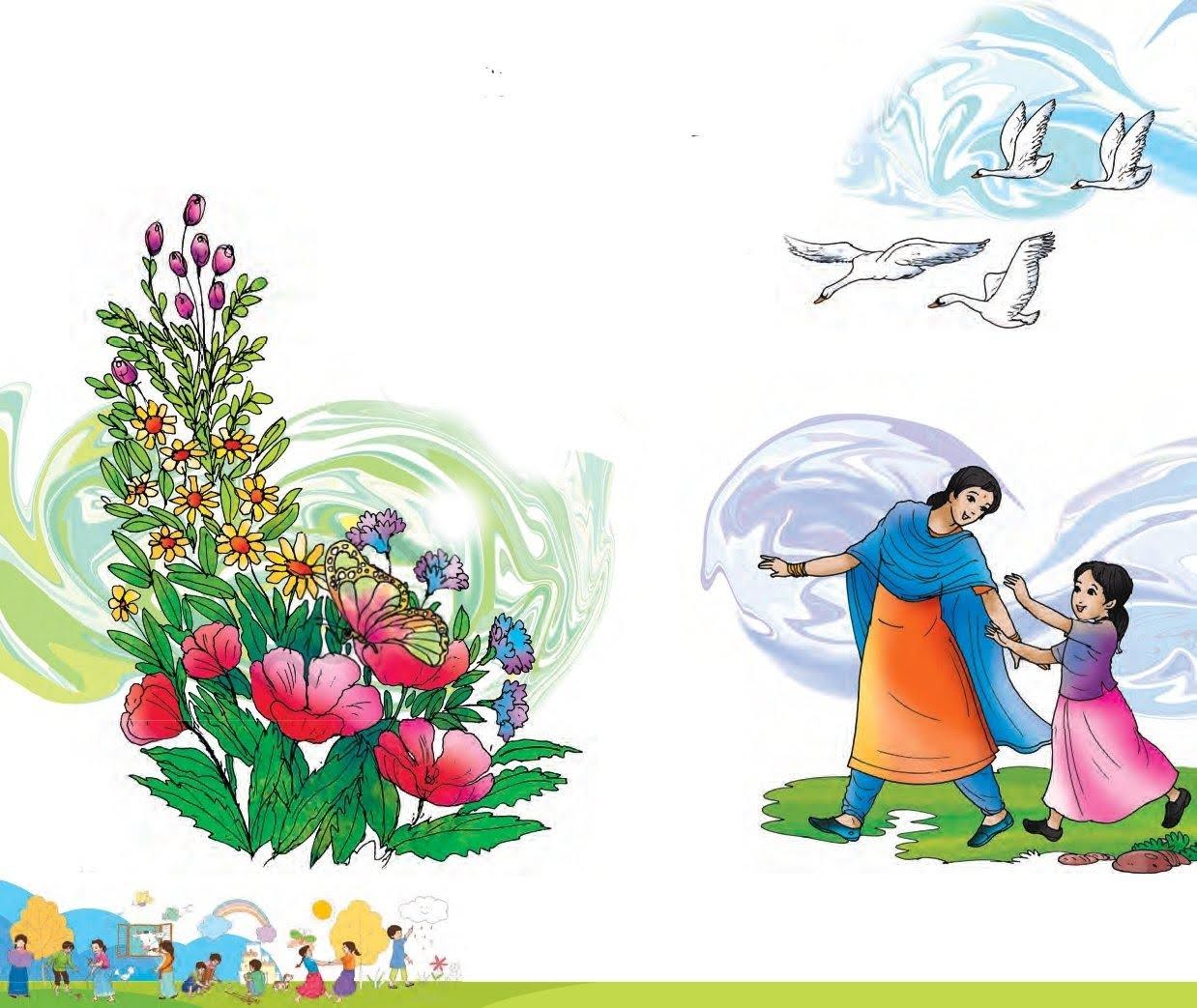3. “जहाँ सुरभि मनमानी ? हाँ, माँ, यही कहानी । “ 3. वर्ण वर्ण के फूल खिले थे, झलमल कर हिम-बिंदु झिले थे, हलके झोंके हिले-मिले थे, लहराता था पानी। “
