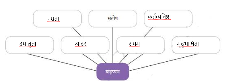 उत्तर – बड़प्पन व्यक्ति के गुणों, स्वभाव और कर्मों से पहचाना जाता है। (★)