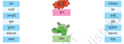 • इस कविता में ‘फूल’ और ‘काँटा’ के उदाहरण द्वारा लोगों के स्वभावों के अंतर और समानताओं की ओर संकेत किया गया है। दूसरे शब्दों में, ‘फूल’ और ‘काँटा’ प्रतीक के रूप में प्रयोग किए गए हैं। अपने साथियों के साथ मिलकर चर्चा कीजिए कि फूल और काँटा किस-किस के प्रतीक हो सकते हैं। इन्हें उपयुक्त प्रतीकों से जोड़िए-