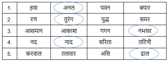 यहाँ पर दिए गए शब्दों से उस शब्द पर घेरा बनाइए जो समानार्थी न हों—