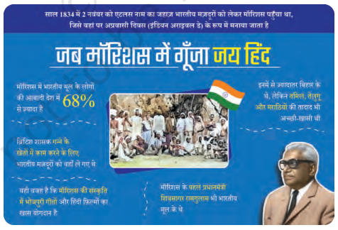 उत्तर- यह पंक्ति हमें बताती है कि जब हम भारत में रहते हैं, तो हमें अपनी संस्कृति की खासियतों का पूरा एहसास नहीं होता। लेकिन जब हम भारत से बाहर, जैसे मॉरिशस जाते हैं, तो हमें समझ में आता है कि हमारी संस्कृति कितनी जीवंत और मजबूत है।