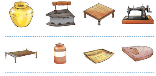 | 6. छीको | 3. गोल पात्र के आकार का रस्सियों का बुना हुआ जाल जो छत या ऊँची जगह से लटकाया जाता है ताकि उसमें रखी हुई खाने-पीने की चीज़ों (जैसे— दूध, दही आदि) को कुत्ते, बिल्ली आदि न पा सकें। |