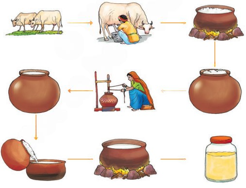 | 3. लकुटि कमरिया | 3. गोल पात्र के आकार का रस्सियों का बुना हुआ जाल जो छत या ऊँची जगह से लटकाया जाता है ताकि उसमें रखी हुई खाने-पीने की चीज़ों (जैसे— दूध, दही आदि) को कुत्ते, बिल्ली आदि न पा सकें। |