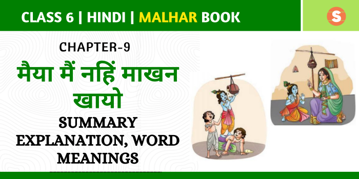 मैया मैं नहिं माखन खायो सार – Here is the CBSE Class 6 Hindi Malhar Chapter 9 Maiya Main Nahin Makhan Khayo Summary with detailed explanation of the lesson ‘Maiya Main Nahin Makhan Khayo’ along with meanings of difficult words. Given here is the complete explanation of the lesson, along with summary
