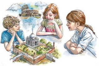 व्याख्या- एंजेला लंदन के प्रसिद्ध इलाके केंजिंग्टन में रहती थी। उसका स्कूल उसके घर के पास ही था, जिससे उसे वहाँ जाने में ज्यादा समय नहीं लगता था। उसके कोई सगे भाई-बहन नहीं थे, इसलिए वह अपने दोस्तों जेम्स और कीरा के साथ समय बिताना पसंद करती थी। वे तीनों मिलकर कई तरह के काल्पनिक खेल खेलते थे और नई-नई कहानियों का हिस्सा बनने में उन्हें मज़ा आता था। खासकर वे ऐसी कहानियों में खो जाते थे, जिनमें किसी दूर देश की रोमांचक यात्रा का जिक्र होता था। एंजेला को उन कहानियों से बहुत प्यार था, जिनमें उसे ताजमहल, एफिल टॉवर या कोलोजियम जैसी मशहूर जगहों की सैर करनी होती। वह सपनों में ही दुनिया की सैर कर लिया करती थी, लेकिन उसे बिल्कुल अंदाजा नहीं था कि उसकी यह कल्पनाएँ जल्द ही हकीकत बनने वाली हैं। जल्दी ही, उसे एक ऐसा मौका मिलने वाला था, जिससे उसकी ज़िंदगी में एक नया अनुभव जुड़ने वाला था।