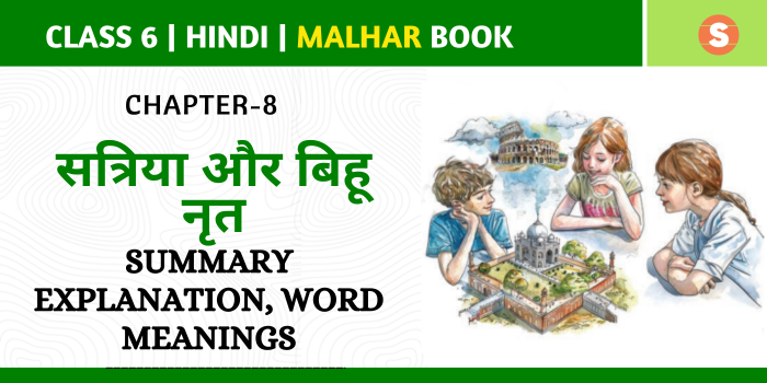 सत्रिया और बिहू नृत्य सार – Here is the CBSE Class 6 Hindi Malhar Chapter 8 Satriya aur Bihu Nritya Summary with detailed explanation of the lesson ‘Satriya aur Bihu Nritya’ along with meanings of difficult words. Given here is the complete explanation of the lesson, along with summary