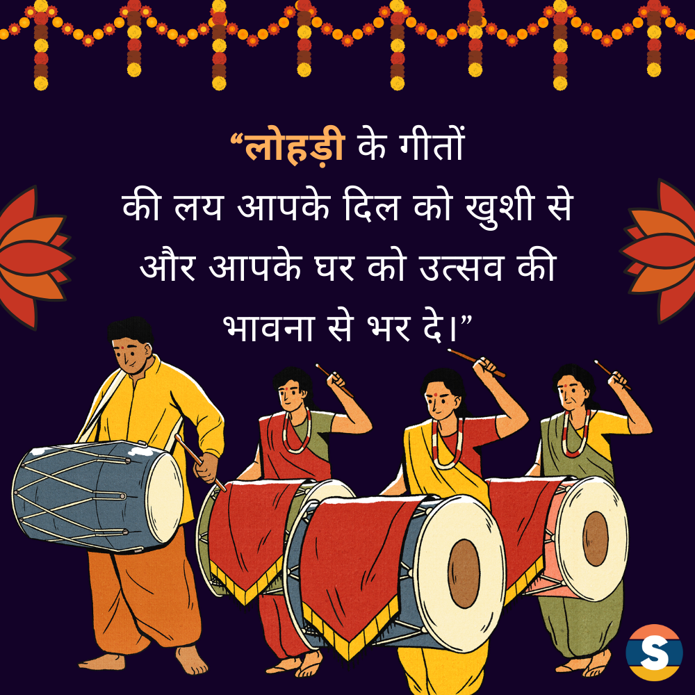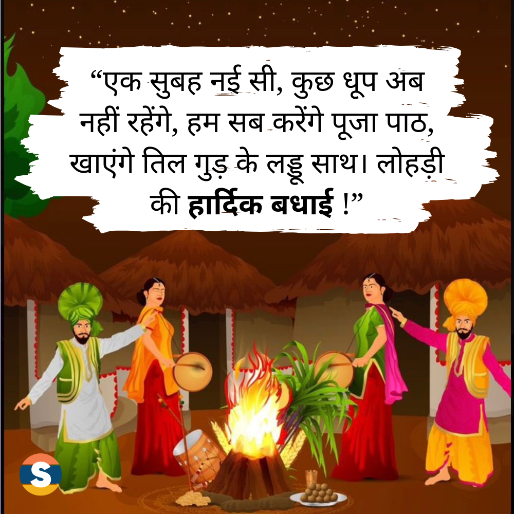 - “लोहड़ी का त्योहार आपके लिए समृद्धि, स्वास्थ्य और उत्सव के अनंत क्षण लेकर आए। लोहड़ी की शुभकामनाएँ!”