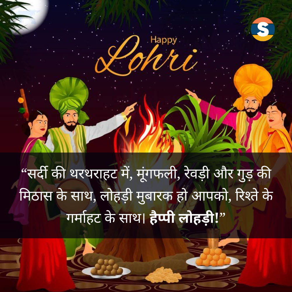 - “सर्दी की थरथराहट में, मूंगफली, रेवड़ी और गुड़ की मिठास के साथ, लोहड़ी मुबारक हो आपको, रिश्ते के गर्माहट के साथ। हैप्पी लोहड़ी!”