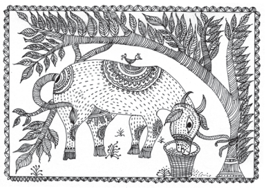 The essay also explains that tribal arts have a distinct way of creating space and images, which is “hallucinatory.” The lines between art and everyday life are blurred, with tribal paintings merging with living spaces and narratives starting from trivial events. There’s no strict sequence, and episodes often appear chaotic like dreams, with mixtures of old and new imagery. Despite this apparent freedom, tribal arts follow very strict conventions, adhering to past traditions while playfully making small changes.