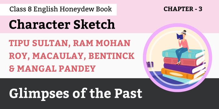 A character sketch defines what the character is like and how he/she evolves or develops throughout the story. In this post you can find the Character Sketch of Tipu Sultan, Ram Mohan Roy, Macaulay, Bentinck and Mangal Pandey from Class 8 English Honeydew Book Chapter 3 – Glimpses of the Past.