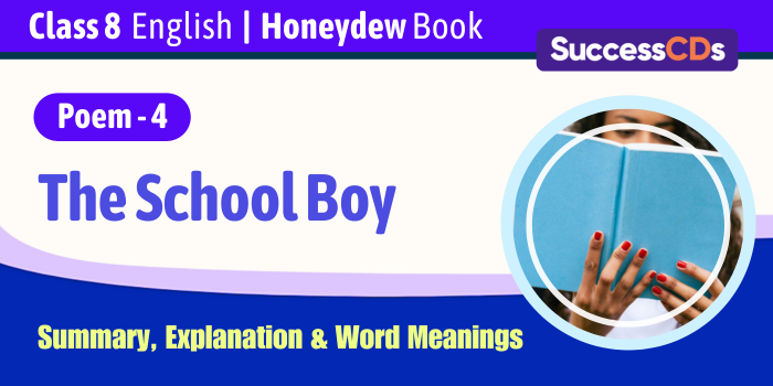 The School Boy Summary – Are you looking for the summary and lesson explanation for CBSE 8 English Poem 4- The School Boy from English Honeydew Book. Get Lesson summary, explanation along with difficult word meanings