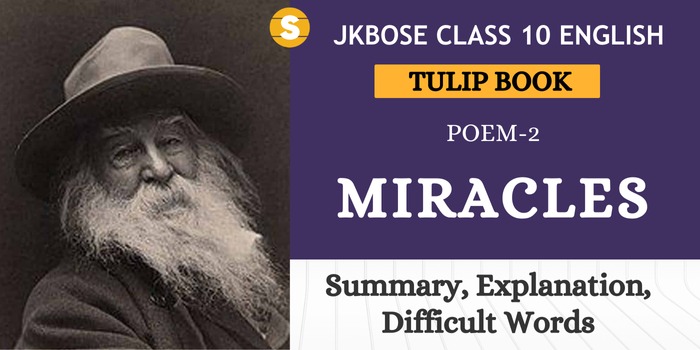 Miracles– Are you looking for Summary and Lesson Explanation for Jammu and Kashmir Board Class 10 English Poem 2 Miracles from Tulip Book. Get notes, summary of the Lesson followed by line by line explanation of the lesson along with the meanings of difficult words.
