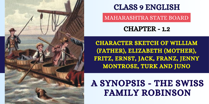 A character sketch defines what the character is like and how he/she evolves or develops throughout the story. In this post you can find the Character Sketch of William (Father), Elizabeth (Mother), Fritz, Ernst, Jack, Franz, Jenny Montrose, Turk and Juno from Maharashtra Class 9 English Kumarbharti Book Chapter 1.2 A Synopsis- The Swiss Family Robinson