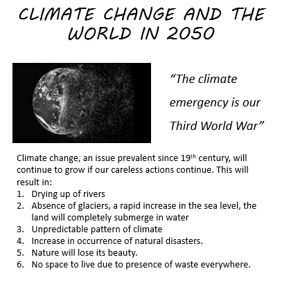 Q4. Design a poster on the theme of “Climate change and the world in 2050”.