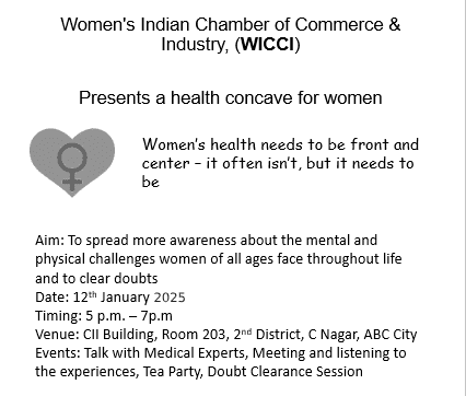 Q3. You are the President of WICCI which is organising a health conclave focusing on women’s health. Draft a poster creating awareness about the event.