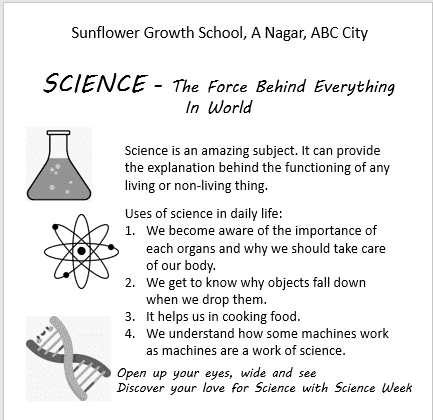 Q5. Your school is celebrating Science week. Prepare a poster to create awareness regarding the importance of science in our daily lives.